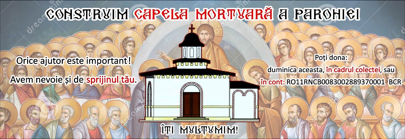 Membrii Consiliului Parohial, precum și preoții parohiei, au primit numeroase solicitări din partea enoriașilor, privind construirea unei capele mortuare, în curtea bisericii, unde să fie depuse persoanele decedate din ziua decesului și până în ziua oficierii slujbei de înmormântare. Inițiativa de construire a capelei vine să răspundă acestei nevoi legitime a credincioșilor noștri, dar și prevederilor specifice din legislația europeană și românească, privind înhumarea persoanelor decedate.
