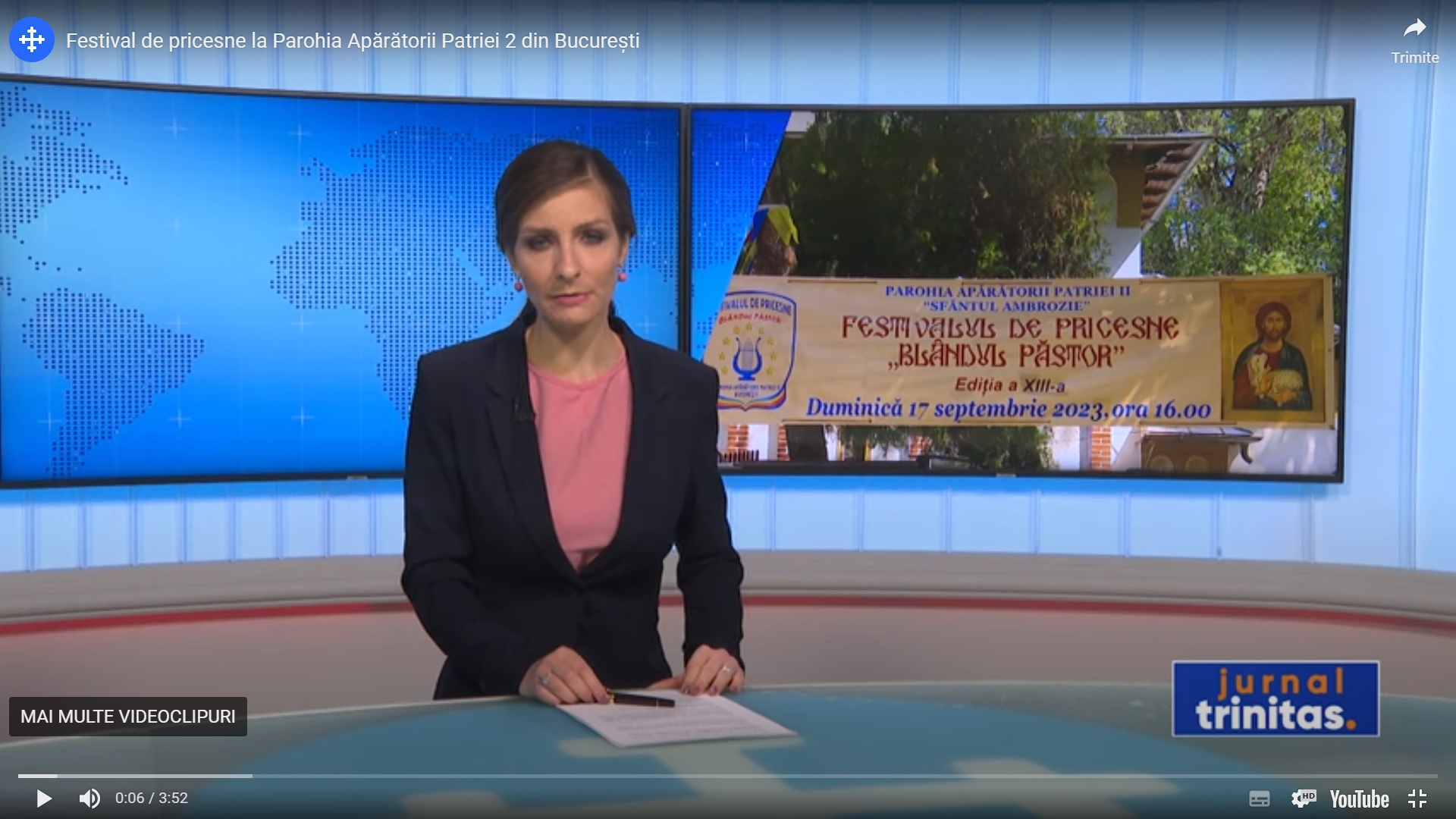 Joi, 7 septembrie 2023, Televiziunea Trinias a Patriarhiei Române a prezentat un promo la Festivalul de pricesne «Blândul Păstor». Părintele paroh Mircea Uță a dat un interviu în care a vorbit despre pregătirile pe care comunitatea parohială le face pentru acest eveniment cultural și misionar. Pentru a vedea video-ul apasă aici!