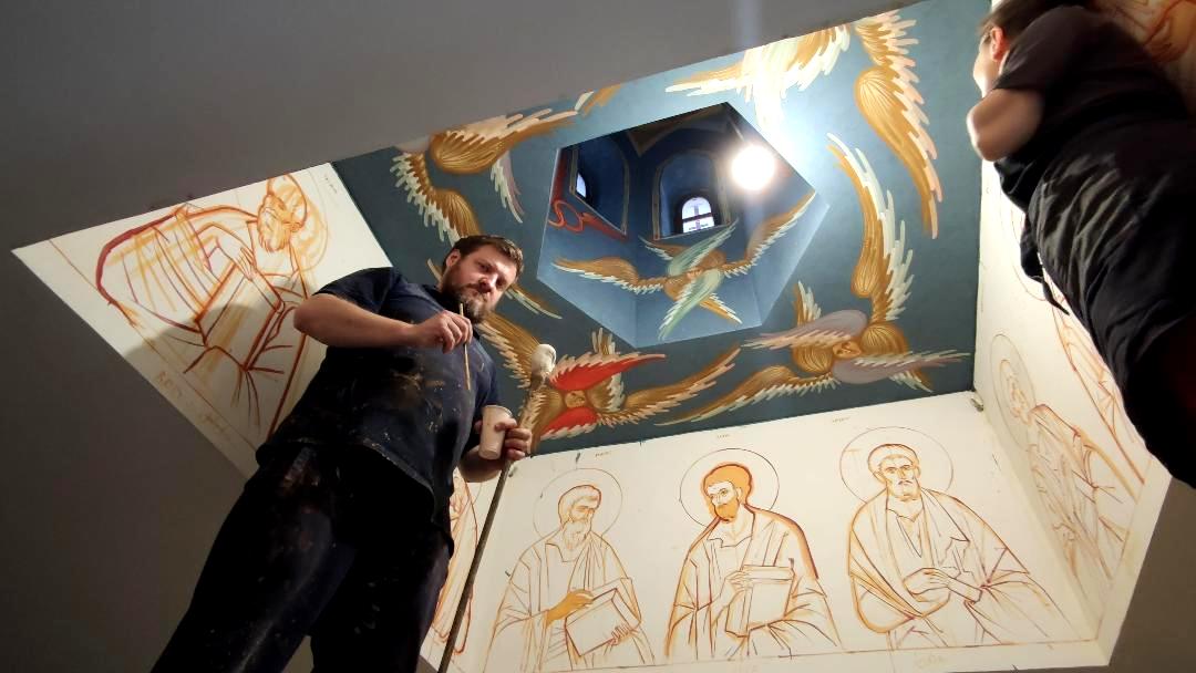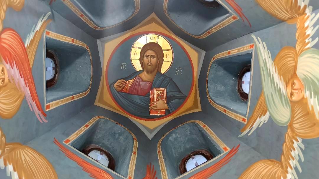 Lucrarea este executată de pictorul Aurel Dumitrescu și a demarat cu pictarea suprafețeor din partea superioară a turlei, respectiv cu pictarea Pantocratorului, adică a Mântuitorul Hristos, iar pe cei patru pereții ai turlei, va continua pictarea celor 12 Apostoli.