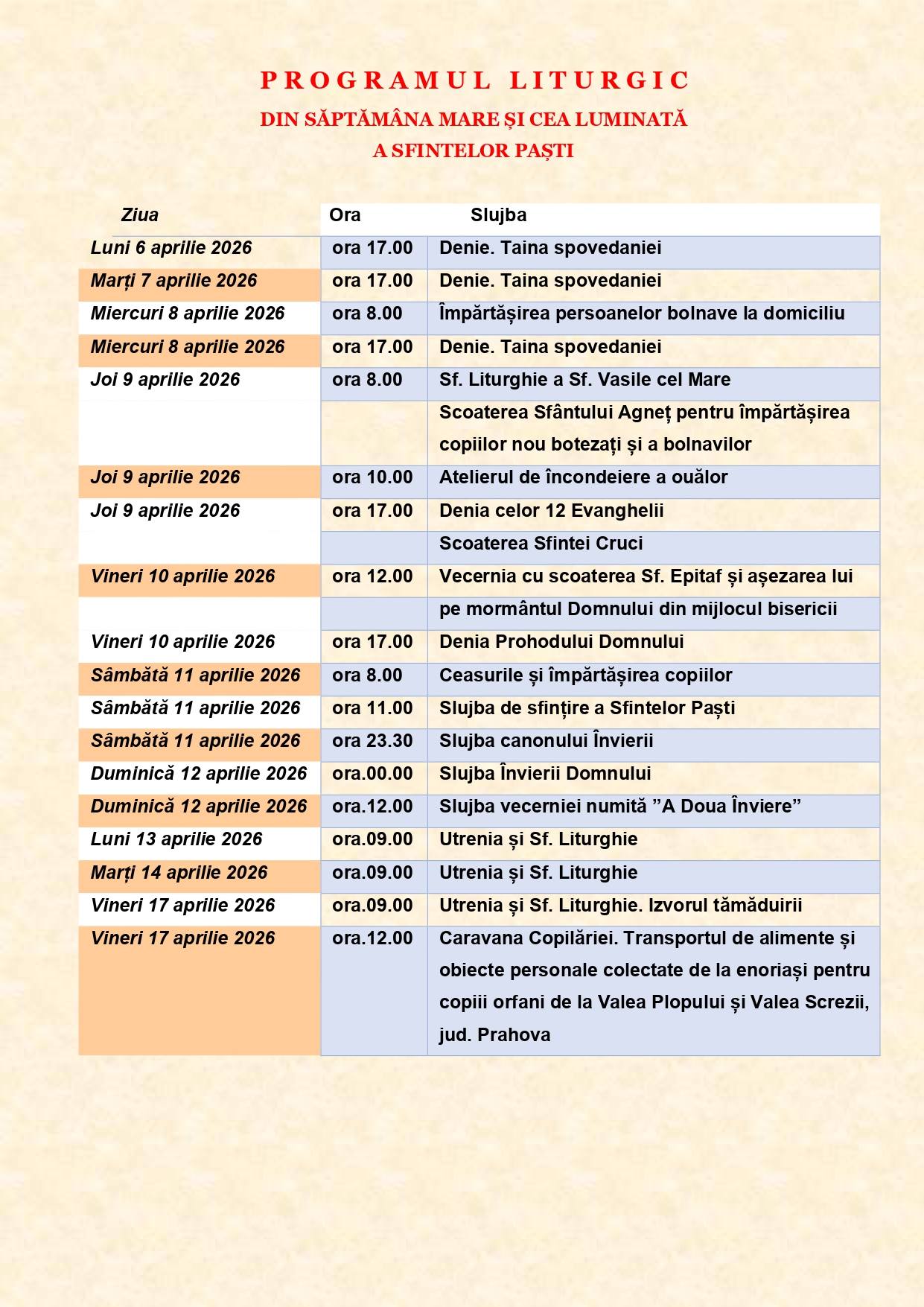 Paroh: Pr. Dr. Mircea Alexă Uţă, Tel. 0744.185.581