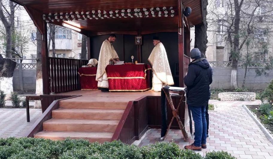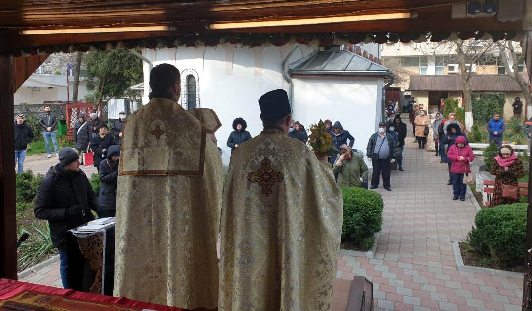 În Duminica a III-a a Postului Mare, dedicată Sfintei Cruci, enoriașii parohiei noastre au participat la Sfânta Liturghie oficiată în aer liber, pe altarul de vară, de preoții bisericii. Deşi vremea a fost rece, inimile au fost calde în rugăciune cu nădejde pentru a trece de încercarea pandemiei COVID-19. Membrii Consiliului Parohial s-au ocupat din vreme să amplaseze scaune în curtea bisericii, la un metru distanță unele de celelalte, iar credincioșii le-au ocupat, respectând astfel măsurile de prevenție dispuse de autorități împotriva răspândirii epidemiei.